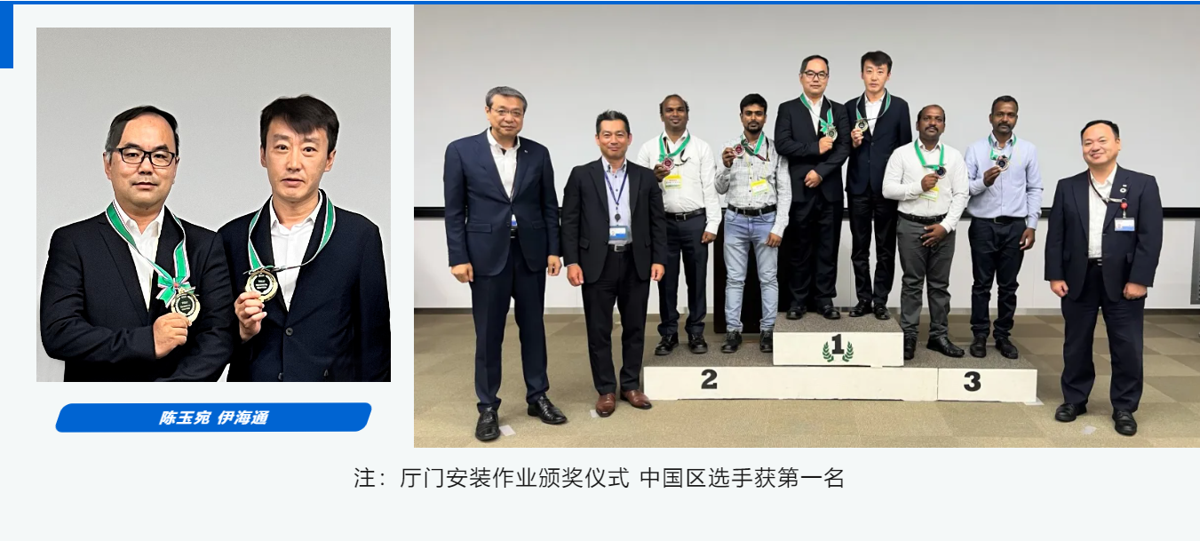 在本屆TTM大會(huì)中,東芝電梯中國區(qū)的選手們表現(xiàn)出色,參與了控制裝置的組裝、廳門安裝作業(yè)及電梯定期檢查三個(gè)項(xiàng)目,斬獲了2金1銀的優(yōu)異成績,展現(xiàn)了領(lǐng)先的技術(shù)實(shí)力、嚴(yán)謹(jǐn)?shù)墓そ尘窈妥吭降膱F(tuán)隊(duì)協(xié)作能力。